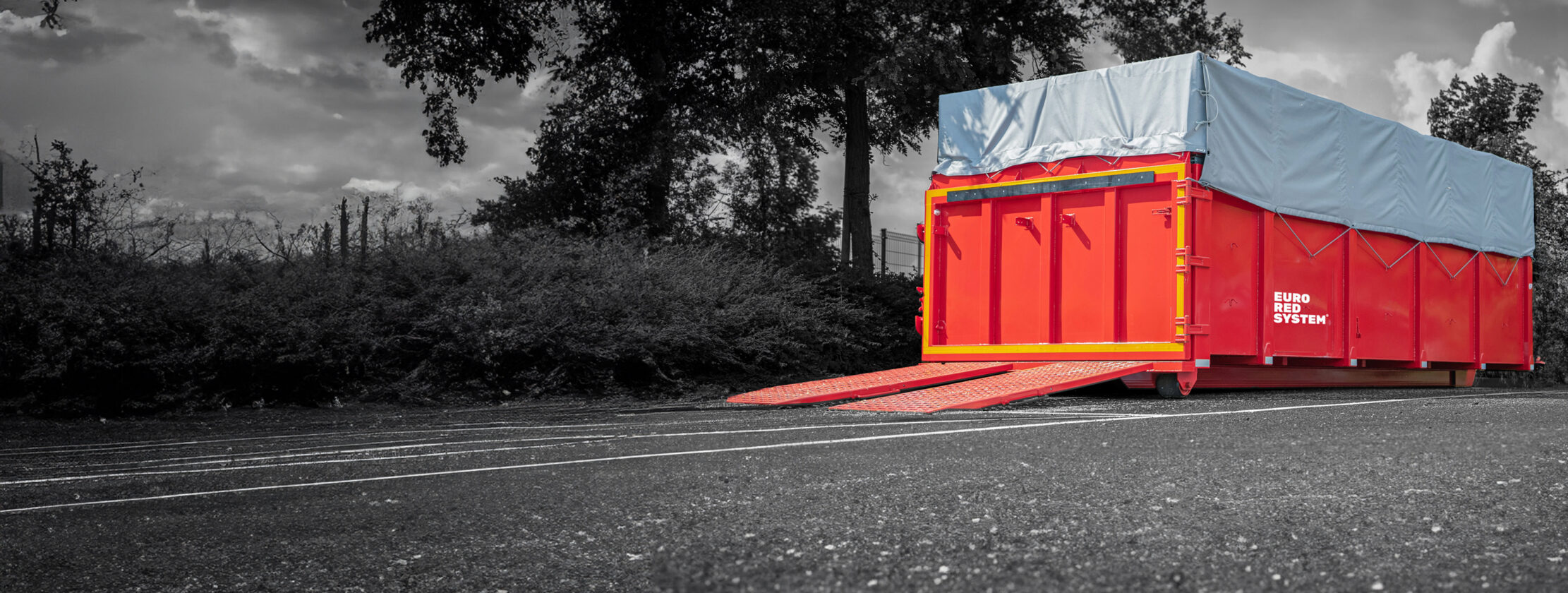 Caisson entreposé à l’extérieur des bâtiments de la concession, L’Euro Red Box / Car, est en mesure d’accueillir intégralement et rapidement un véhicule léger. La conception de l’Euro Red Box / Car permet également aux pompiers d’immerger rapidement le véhicule, grâce à un raccord d’arrivée d’eau compatible avec leurs.